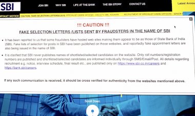 SBI Caution: बैंक ने कहा कि हम कभी भी चयनित व्यक्तियों की सूची वेबसाइट पर जारी नहीं...