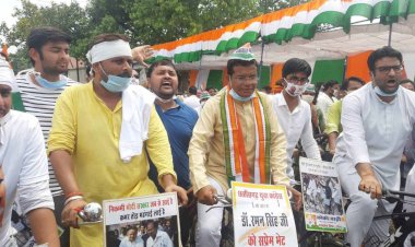 पेट्रोल-डीजल के बढ़ते दामों के विरोध में छत्तीसगढ़ कांग्रेस का प्रदर्शन, चलाई साइकिल
