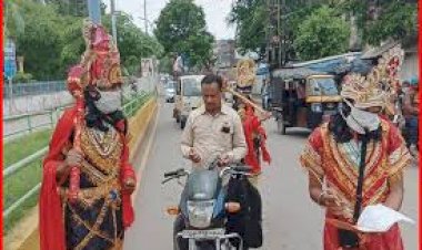 coronavirus Chhattisgarh : लोगों को मास्क पहनने की सीख देने रायपुर के चौराहों पर...