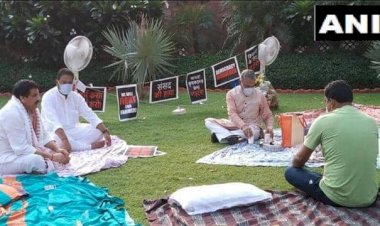 Farm Bills: संसद परिसर में चार विपक्षी दलों के निलंबित सांसद का गांधीवादी तरीके से...
