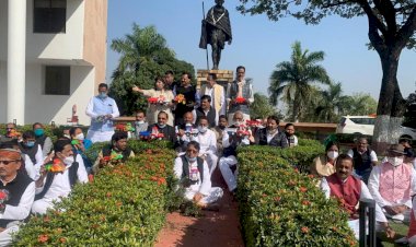 लखनऊ में पुलिस ने बापू प्रतिमा पर माल्यार्पण से रोका तो...
