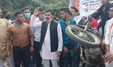 भोपाल में मोटरसाइकिल की शवयात्रा, बढ़ती महंगाई के खिलाफ...