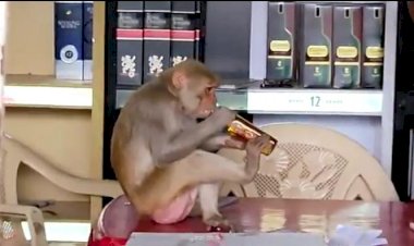 मध्यप्रदेश के मंडला जिले में जाम का मुरीद हुआ बंदर, अंग्रेजी शराब की दुकान में घुसकर...