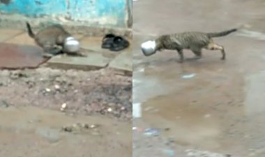 लोटे में अटका बिल्ली का सिर, पूंछ पकड़कर खेलने लगे बच्चे,...
