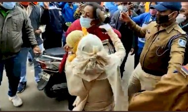 बीच सड़क महिला और पुलिसकर्मियों में हुई धक्का मुक्की, महिला...