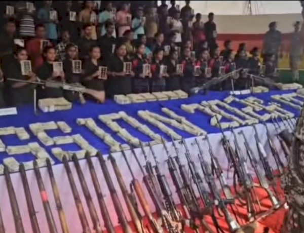 CG: बस्तर में 108 नक्सलियों ने किया सरेंडर, करोड़ों रुपए कैश और भारी मात्रा में हथियार बरामद