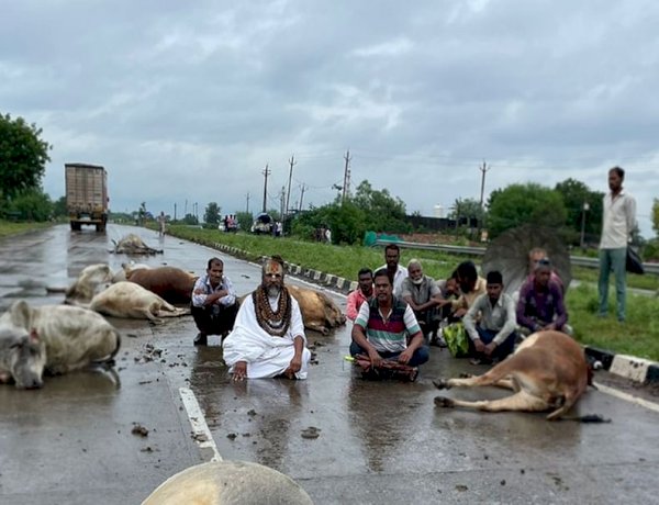 रायसेन में सड़क हादसे में 12 गायों की मौत, धरने पर बैठे कंप्यूटर बाबा, बोले- गौमाता की दुर्दशा नहीं देख सकते