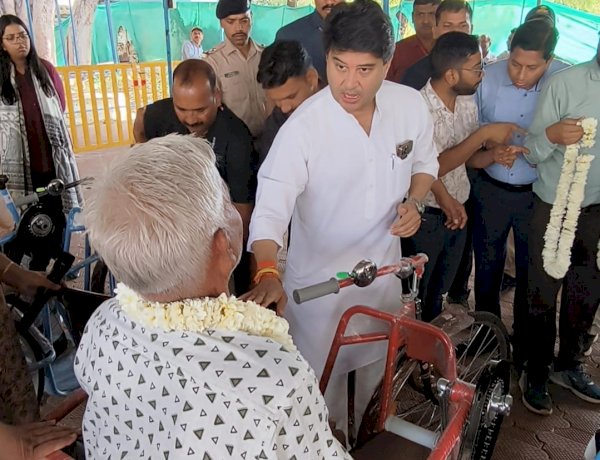 ज्योतिरादित्य सिंधिया ने दिव्यांग को दी घटिया ट्राइसाइकिल, 500 मीटर चलते ही पहिया बैंड