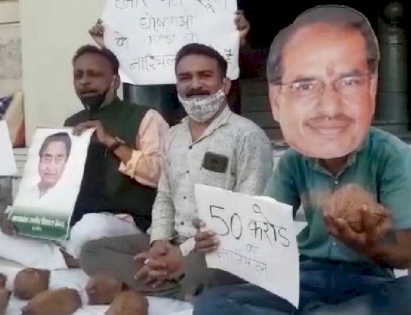 कांग्रेस कार्यकर्ताओं द्वारा लगाई गई दुकान में नारियल की कीमत जानकर आप हैरान हो जाएंगे। यहां 50 करोड़ से लेकर 50 हजार करोड़ रुपये तक के नारियल हैं। यही नहीं, दुकान पर बैठे कार्यकर्ता सीएम शिवराज का मुखौटा लगाए हुए हैं। कांग्रेस सचिव विवेक खंडेलवाल अपनी इस दुकान के पीछे की सोच बताते हुए कहते हैं, 'सीएम शिवराज जहां भी जाते हैं एक नारियल फोड़ देते हैं। वह अपने साथ हमेशा नारियल लेकर चलते हैं। ऐसे घोषणावीर और नारियल फोड़ू मुख्यमंत्री, जिनका काम सिर्फ नारियल फोड़ना है, प्रदेश के विकास से जिन्हें कोई लेना-देना नहीं है उनके विरोध में हमने यह नारियल दुकान लगाई है। इसके प्रोपराइटर शिवराज हैं जो पांच हजार से लेकर पचास हजार करोड़ के नारियल फोड़ देते हैं।' सरकार के खिलाफ प्रचार करने का कांग्रेस का यह अनोखा तरीका सोशल मीडिया पर काफी तेजी से वायरल हो रहा है।