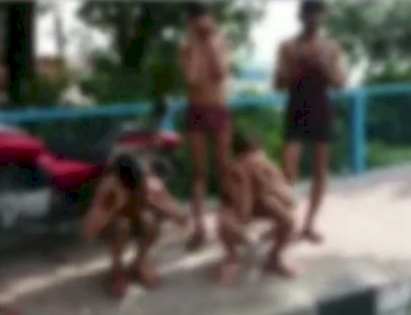 तालाब में नहाते बच्चों का पुलिस निकाला जुलुस, अर्धनग्न अवस्था में रोड पर दौड़ाया