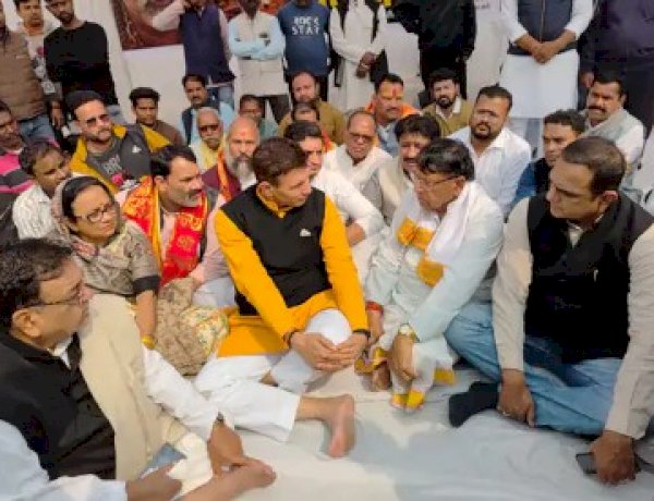 भोपाल के रोशनपुरा चौराहे पर शुक्रवार को कांग्रेस ने उपवास-धरना दिया। जीतू पटवारी और पीसी शर्मा ने भाजपा सरकार पर सनातन परंपराओं, साधु-संतों और शंकराचार्य अविमुक्तेश्वरानंद के अपमान का आरोप लगाया।
