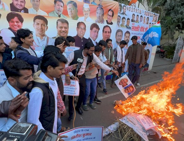 भोपाल में बिहार के मुख्यमंत्री नीतीश कुमार के विरोध में प्रदर्शन, NSUI कार्यकर्ताओं ने पुतला फूंका