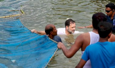 राहुल गांधी ने बेगूसराय में तालाब में लगाई छलांग, मछुआरों...