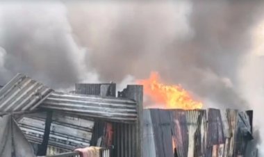 इंदौर के सांवरे रोड पर रविवार सुबह प्लास्टिक स्क्रैप से भरे गोदाम में भीषण आग लग...