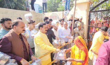 मुरैना जिले के अहरौली गांव में चमड़ा माता मंदिर में प्रसाद वितरण के दौरान निर्माणाधीन...